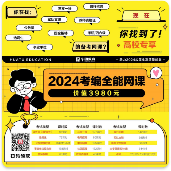 (四)凡参加本次活动的同学,可以免费获得24年考编全能课(选调生、省考、事业单位、教师、医疗…)