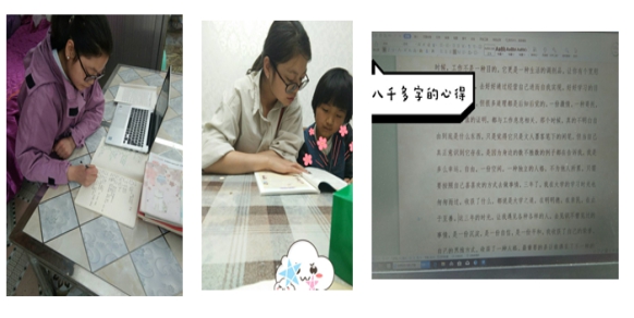 马婉霞的母亲是一位人民教师:“我的妈妈是一名乡村人民教师,他们每天既要与线上各地的优秀老师交流,积极调整教学方案,还要按时去做乡村联防联控工作的志愿者,由于志愿者缺乏,我很荣幸也成为了其中的一员,每天我们早早就来到志愿场地,对经过的所有人员进行记录,检查有无出行证和绿码、每个人的姓名、家庭住址、体温、身份证号、电话号码也必不可少,提醒人们戴口罩,宣传防疫事项……这个经历让我对疫情有了更多更深的了解,也让我在祖国战疫时献出绵薄之力。”