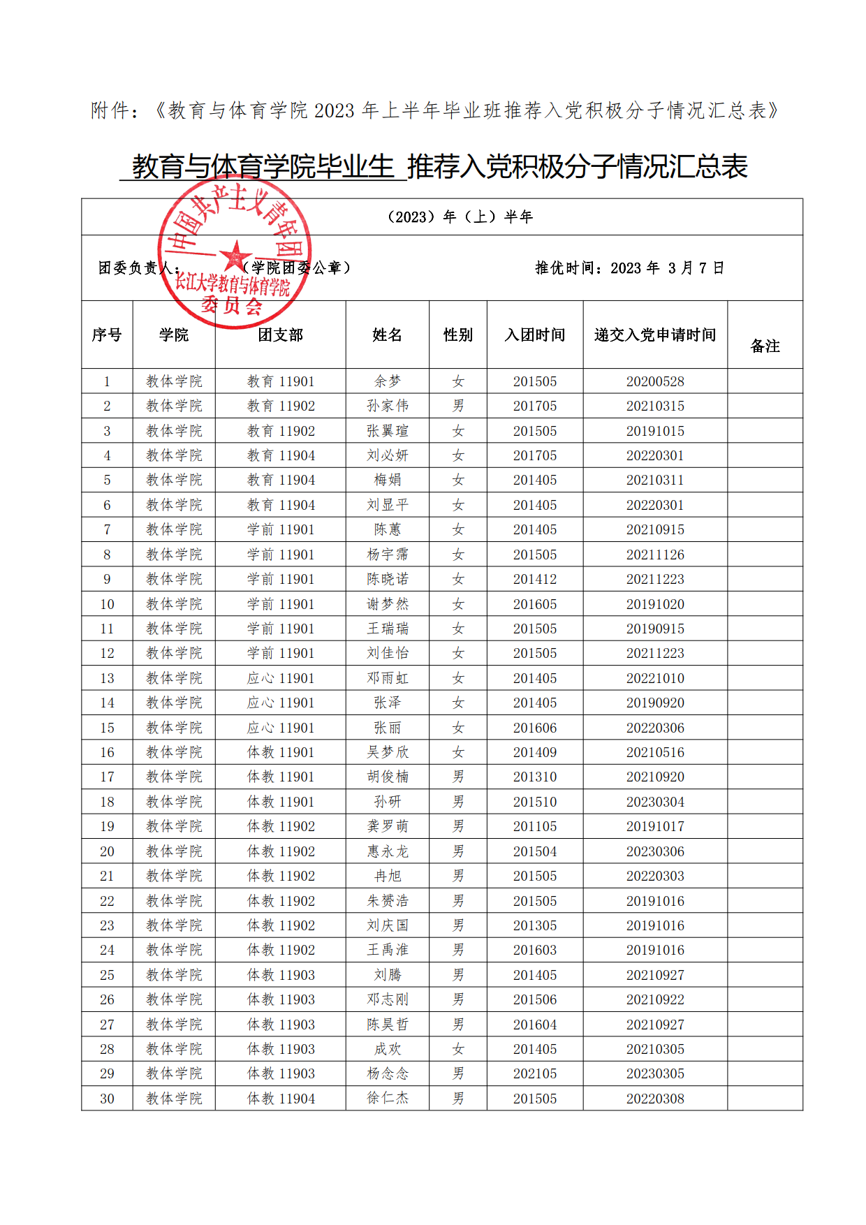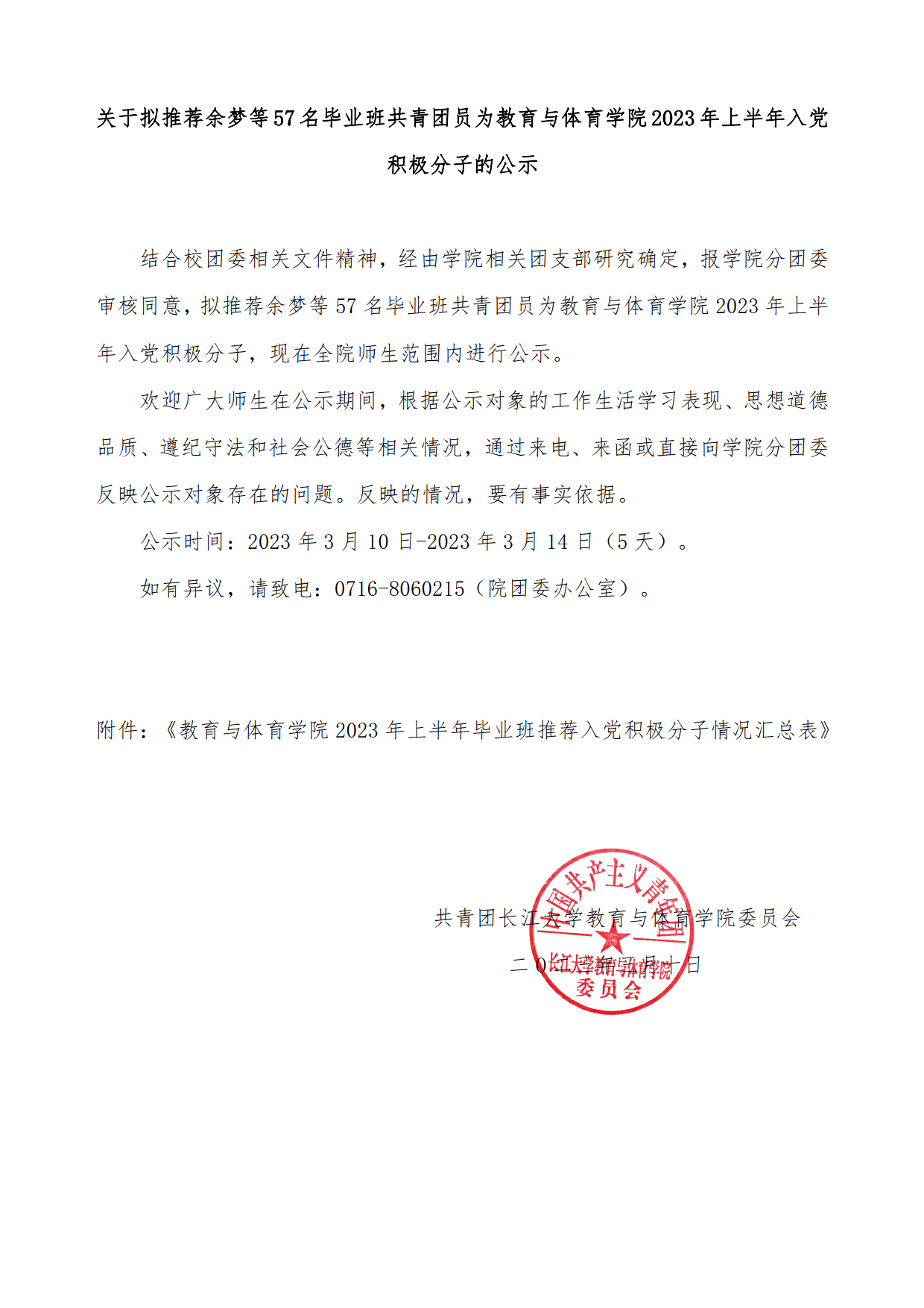 关于拟推荐余梦等57名毕业班共青团员为2023年上半年入党积极分子的公示