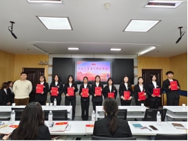 会议第三项,由李振武老师为员工会主席团代表王佳祥授旗,在员工会主席王佳祥的带领下,员工会全体成员以饱满的热情进行庄严宣誓。随后,由团委员工会负责人代表黄廉洁发言,他认为员工会成员要做到“三会”,即会说话、会办事、会做人。接着,由主席团代表王佳祥作总结讲话,他指出员工会成员要有“功成不必在我,功成必定有我”的觉悟,有担重担、敢吃苦、肯攀登的精神。最后,成员们写下给未来自己的信,由各部门主要负责人投进时光邮筒。至此,本次成立大会在热烈的掌声中圆满结束。