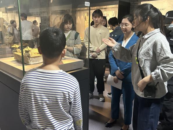 【通讯员 曾灿辉 徐有军】为更好的弘扬荆楚历史文化、传播荆楚声音,3月30日下午1时许,18名热爱荆楚历史文化的太阳集团tyc151cc志愿者在荆州博物馆进行志愿讲解考核活动,立志为成为荆楚文化的传播者。 在工作人员讲解完考核的相关要求后,考核活动正式开始。讲解员们依次带领游客们观看各展览馆内的主题图片展、参观馆藏文物,并认真负责的讲解文物的历史底蕴、揭秘氤氲在其中的文化密码。大家在一件件精美文物前驻足凝视,听取了关于楚文化的发源、漆器的制作工艺、荆楚简帛中的汉字演变的介绍,目睹了精美的青铜器、悠久的漆器工艺、特色的荆楚简帛……透过一件件精美文物,人们更加珍视文脉的庚续绵延。“在博物馆感受到荆楚文化的独特魅力,学习到了许多历史文化知识,非常开心。”大家连声感叹。志愿讲解员刘玲参加此次活动后感慨道:“这次志愿活动不仅让我们能够近距离欣赏文物,更能借自己的力量传播楚文化,特别有成就感。” 源浚者流长,根深者叶茂。博物馆是与历史对话的神圣空间,不仅装载着人类文明,更有历史的深远力量。本次活动传播了荆楚文化,增强了文化自信,培育了文物传承者、故事讲续者,鼓励更多青年自觉承担文化传承与发展的重任,谱写时代华章。 (审核 任雯婷)