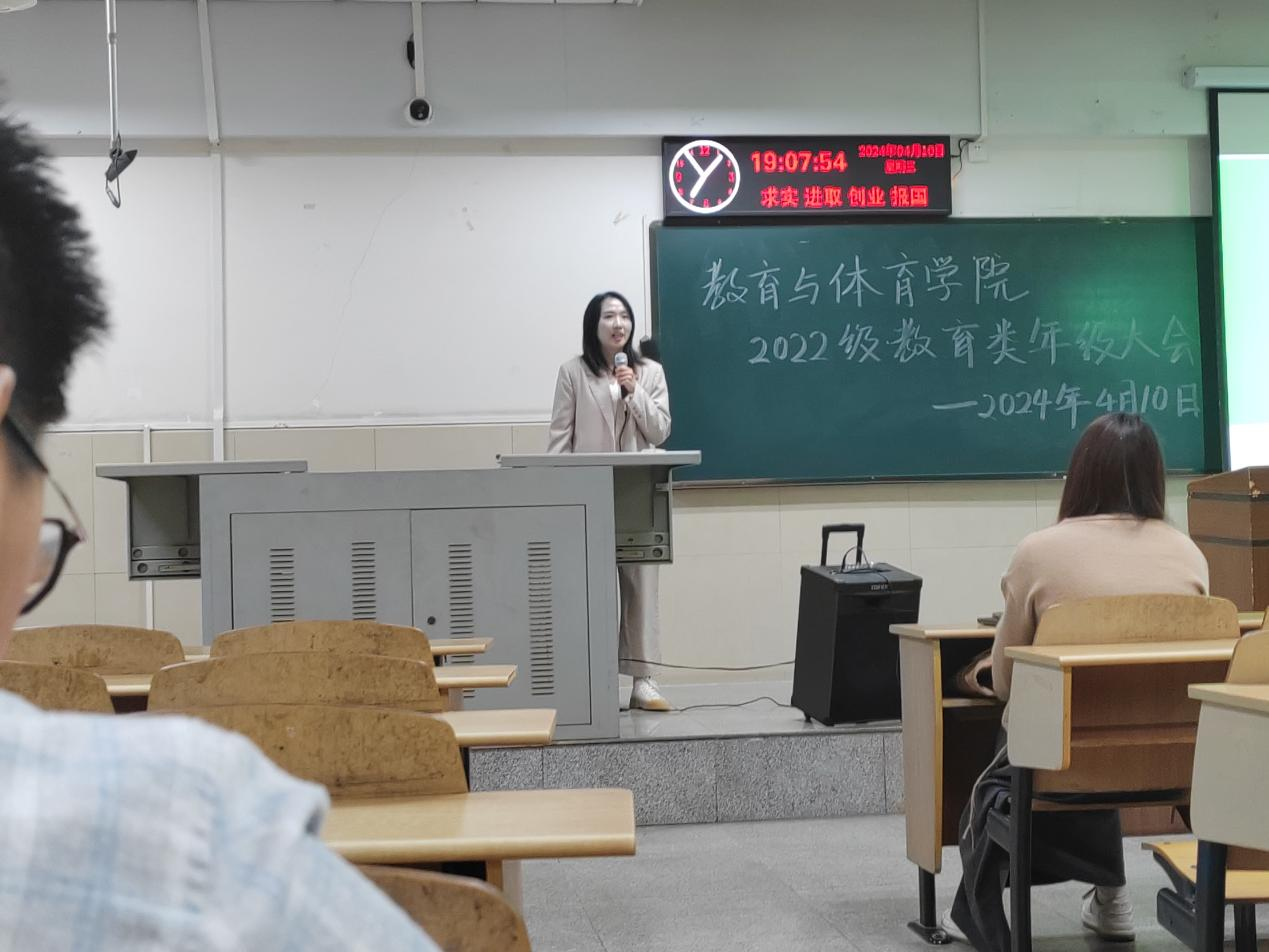 【通讯员 李键韬 徐有军 王传琦/文 刘濠淙/摄】思深方益远,谋定而后动。4月10日晚7时许,太阳集团tyc151cc(以下简称“​太阳集团tyc151cc”)于东校区12教402举行了22级教育类第一次年级大会。本次大会由辅导员任雯婷主持,22级教育类全体员工参加。