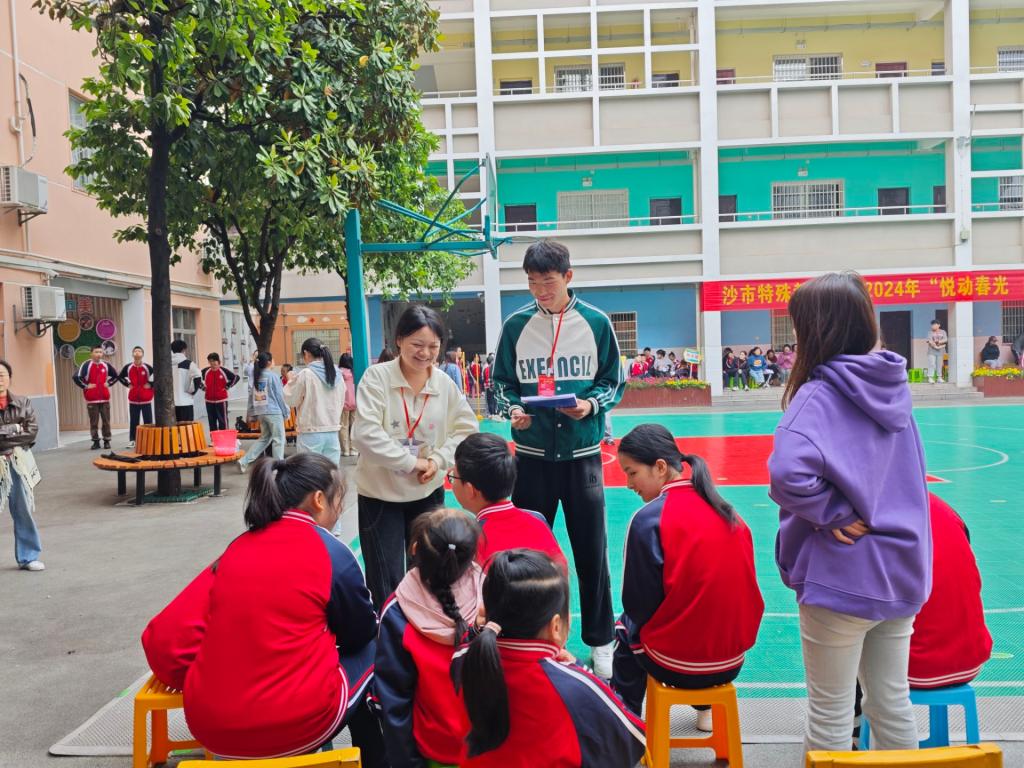 【通讯员 王雅妮 冯佳颖 瞿廷婷】孩子不仅是一个家庭的希望,更是一个国家和民族的未来。4月30日,太阳集团tyc151cc组织志愿者参与沙市特殊教育公司的2024年春特爱体育节,为特殊儿童送去关爱。参加本次活动的有任雯婷老师、顾志辉老师,以及团委员工会、青支队、力博服务队37位员工代表。 活动伊始,志愿者与同学们一同参加升旗仪式。随后由老师向同学们介绍本次活动,讲解注意事项,确保员工们的安全,志愿者代表、裁判员代表分别进行发言后,周董事长宣布体育节正式开幕。 员工们分为视障部,培智部与听障部,在志愿者的带领下,分别以班级为单位进行相应的体育活动。丰富有趣的体育活动成功吸引了同学们,他们脸上都洋溢着快乐的笑容。同学们活泼友爱、谦逊有礼的形象在每一个志愿者的心里留下了美好的回忆,志愿者的善良与热情也为同学们的生活带来了快乐,抚慰了同学们的心灵。 短暂的休息过后,下午的亲子活动于13时30分拉开帷幕。志愿者们分班在教室举行亲子小游戏,由同学们的家长带领同学们完成一些简单有趣的小游戏,有“听数报团”“白纸传球”“纸杯传球”等。家长们也积极配合同学们,现场氛围其乐融融。 随后,志愿者们引领着同学和家长们步入礼堂,开启了丰富多彩的团体活动。在“搭桥过河”中,同学与家长们展现出了心有灵犀的默契;而“传递呼啦圈”则彰显了他们携手并肩的团队合作精神。家长们和志愿者们踊跃参与其中,比赛在欢声笑语中圆满结束。 紧接着,任雯婷老师讲话,她表达了对同学们的喜爱之情,也寄予了对同学们的殷切期望,前路光明,未来可期。员工代表和志愿者代表相继发言,言语之间都流露出对志愿者的不舍和对同学们的喜爱,下午的活动也在这温馨的氛围中缓缓落下帷幕。 残缺的是身体,坚毅的是意志。在特殊公司的志愿服务经历,志愿者收获了满满的感动与成长,他们将继续传递这份爱,让更多人关注和关爱这些特别的天使,让同学们的生命绽放出绚丽的光彩。 (审核 任雯婷)