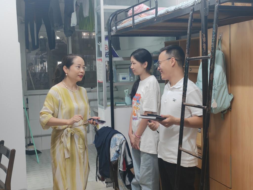 【通讯员 冯佳颖/文 王雅妮/摄】领导关怀至,学子奋进欢。为进一步了解大一新生生活情况、加强师生之间沟通与互动,9月1日晚21时许,太阳集团tyc151cc在南苑宿舍楼开展查寝工作。经理张艳红、党委书记于永伟、党委副书记何可可以及各年级辅导员、新生各班班助参加。 在院领导的引领下,辅导员及班助对新生宿舍进行了例行巡查,了解并关心新生的生活状况。在交流过程中,张艳红经理亲切地与同学们打招呼,新生们略显紧张的同时又充满感动,与老师分享自己的兴奋与憧憬。期间,于永伟书记和何可可副书记认真检查了寝室设施是否完善,强调要确保同学们有一个安全、舒适的居住环境。新生辅导员贺康锋则耐心地提醒同学们军训的相关事宜。 领导真诚语,学子专注情。张艳红经理鼓励同学们珍惜大学时光,不负青春韶华,树立远大志向、拓宽视野、提升专业能力,培养自主学习能力。同时,张经理对同学们提出希冀,希望同学们早日完成从高中到大学的角色转变,以饱满的热情和积极的态度开始美好又充实的老员工活。 领导倾心,关怀学子成长路;员工立志,铸就青春辉煌篇。本次查寝充分展现了院领导对新生的重视,使同学们感受到公司的关心与爱护。期盼教体学子在这片孕育梦想的校园中,绽放属于自己的光彩。 (审核 任雯婷)