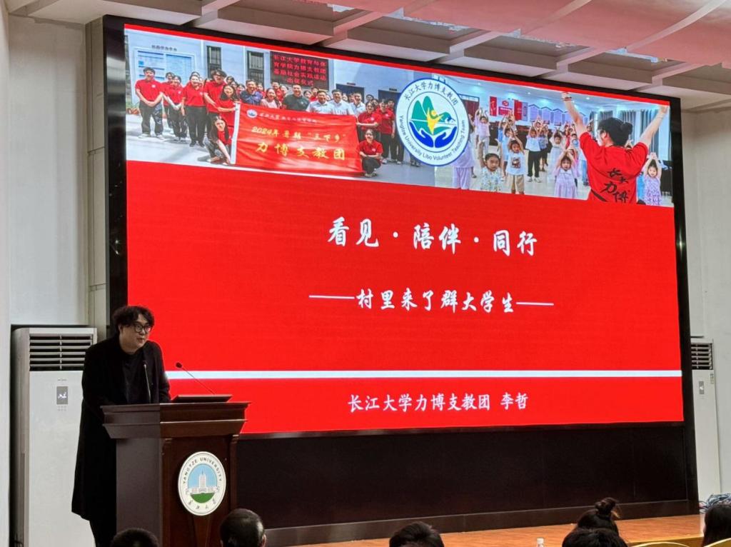 大会最后,来自力博志愿队的负责人李哲做了暑期社会实践工作汇报。基于农村留守儿童群体学习习惯较差、五育融合育人体系的缺失、心理健康水平较低的现状,力博进行了暑期支教活动。他们将“国学素质课程”与“暑期公益课堂”有机结合,专注项目化运作,带动高校与社会,志愿者与服务对象,思辨与行动密实结合,取得丰硕成果,获得湖北省第七届青年志愿公益大赛儿童类铜奖,视频点击率突破4万次。李哲真诚地呼吁全体新生,希望新生积极加入到支教队伍中,把爱和希望的种子传递下去。