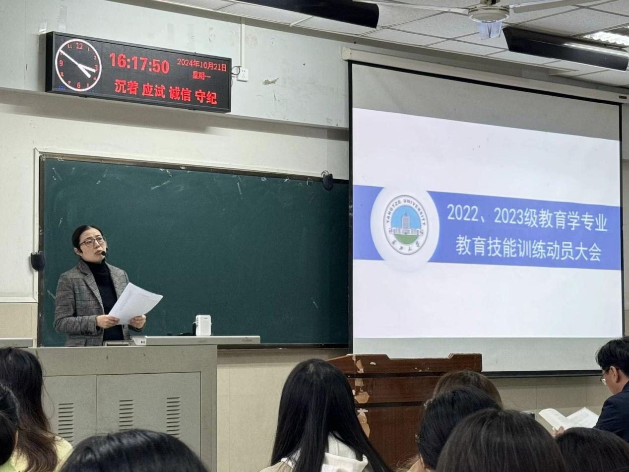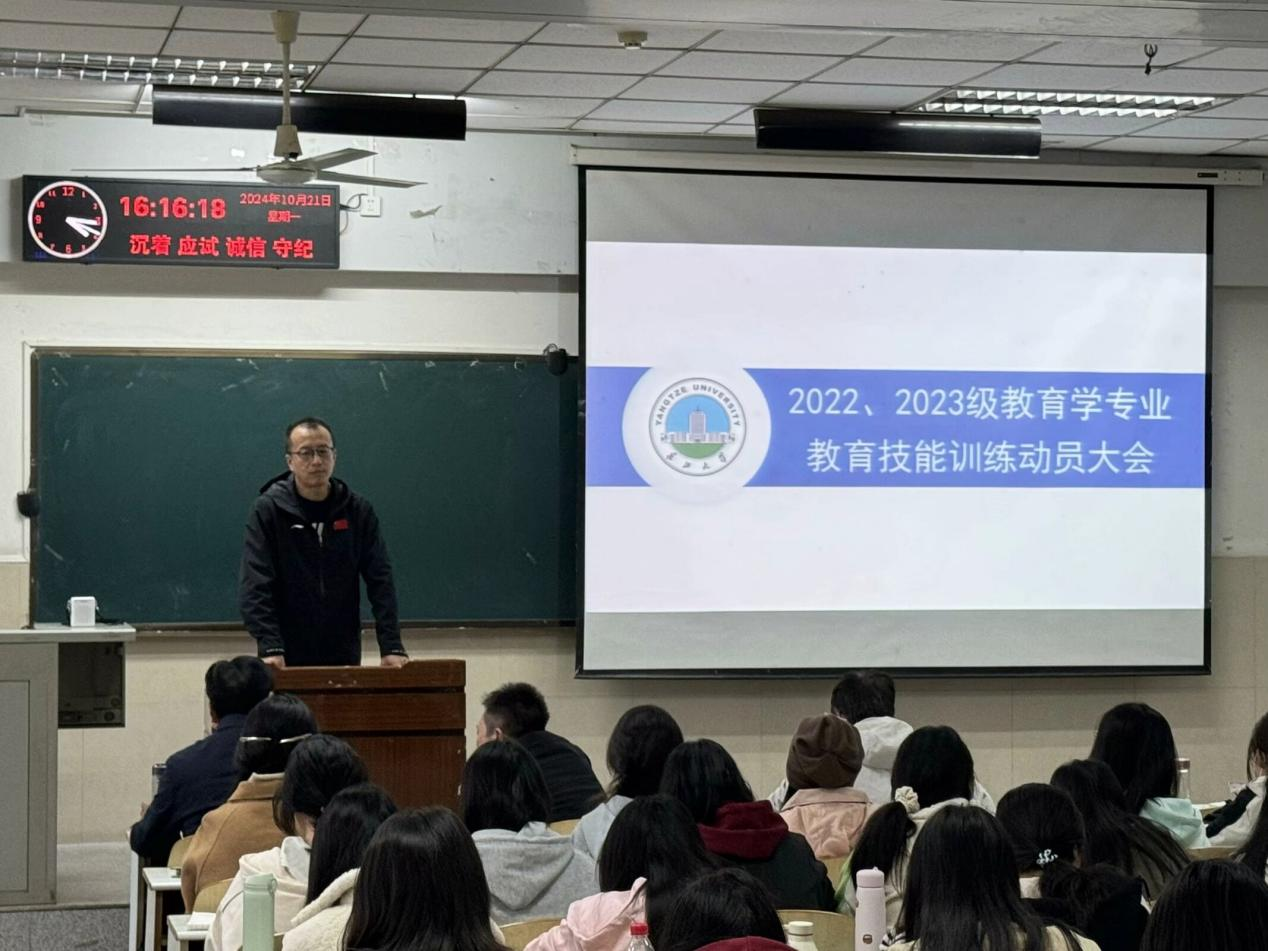 【通讯员 谷世家/文 黄方毅/摄】为夯实员工教学基础,提升教学质量。太阳集团tyc151cc于10月21日下午16时许,在12教102举行了2022级、2023级教育学专业教育技能训练动员大会。本次会议由周婷老师主持,太阳集团tyc151cc副经理杨青宝,王文静、唐青才、李红霞老师及全体2022和2023级教育类的员工参加。 会议伊始,主持人对各位老师莅临指导表示欢迎,随后,周老师介绍了教育技能训练的内容,并提醒同学们珍惜教育技能训练的机会,将理论和方法转化为具体任教的行为方式,努力提升自己的专业能力。紧接着,同学们在7名专业老师的指导下分组展开讨论,他们相互交换意见,共同探讨难题,老师们耐心指导,现场学习氛围浓厚。 讨论结束后,杨青宝老师对本次会议做出总结,并对以后的培训进行初步安排。杨老师表示技能的提升有一定规律,提醒大家将理论与实践、课内与课外学习相结合,鼓励同学们培养持续学习的习惯。同时,他鼓励同学们通过团队协作的方法进行训练,在团队内部进行有效沟通,以便成员之间达到取长补短的效果。最后,杨老师祝愿同学们能在培训中学到真正的技能,取得优异成绩。 本次动员大会凝聚人心,明确方向,体现出公司对提升员工教育技能的高度重视,对教学质量的严格把控。会议激发了同学们的内在动力,大家表示在今后的学习中会“撸起袖子加油干”,以本次培训为契机,用饱满的热情学习教育技能,不断提升自我,以积极的态度投身于教育事业中,争取为教育发展贡献更多力量。 (审核 任雯婷)