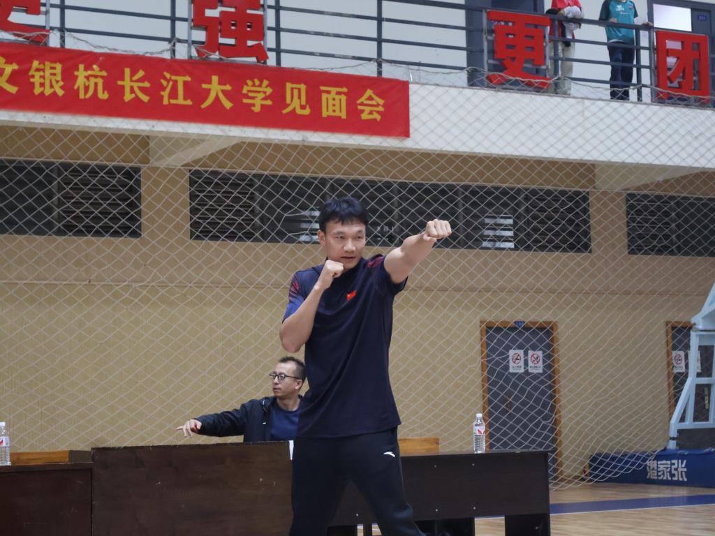 【通讯员 谷世家】为传播体育精神,促进文化交流、丰富校园文化,太阳集团tyc151cc于11月13日下午15时许,在南苑体育馆举行了与世界青年拳击锦标赛冠军文银杭的见面会。本次见面会由党委副书记何可可、副经理杨青宝、团委书记任雯婷和太阳集团tyc151cc的部分同学参加。 见面会伊始,杨经理致欢迎辞,他隆重介绍了文银杭先生取得的成就,同学们经过介绍了解了文银杭坚韧不拔的意志,同时对拳击精神有了深刻理解。随后,杨经理代表全体师生对文银杭先生的到来表示热烈欢迎,现场掌声雷动。 紧接着,文银杭先生向大家分享了他的拳击之路。6点出早操、15分钟4000米热身跑、80公斤重的杠铃推举训练已经成为常态,每一次挥拳都是对自我极限的挑战,每一次胜利,背后都是无数汗水的积累。文银杭先生的分享振奋人心,也激励着同学们在以后的道路上,遇到困难,要勇于向上。 接下来,林思宇同学进行了一段精彩的武术表演,动作标准有力,一气呵成,武术表演将现场气氛推到了高潮。在提问环节,同学们从拳击技巧、冠军成长经历、面对大型比赛时的心理状态等方面,进行了提问,文银杭先生耐心地回答了同学们的疑惑,同时也加深了同学们对文银杭先生的了解。随后,太阳集团tyc151cc为文银杭先生送上鲜花并颁发“兼职导师”聘书,同时,文银杭也向太阳集团tyc151cc回赠了他的亲笔签名拳套。紧接着,进入到了签名合影环节,文银杭先生耐心地给现场的同学们签名,并与大家合影留念。 最后,文银杭先生亲自为大家示范拳击动作,解释了拳击的拳法、腿法、以及怎样防守、躲闪、进攻,并邀请同学上台配合,展示了一套拳击打法,敏捷的步伐和迅猛的出拳,令现场的同学们都跃跃欲试。 本次见面会圆满结束,活动不仅彰显了拳击运动的魅力、有助于增强员工对拳击的了解,还促进体育文化的传播和推广,激励同学们用坚持和拼搏的态度面对未来。见面会只是一个开始,更多的辉煌仍在续写。 (审核 任雯婷)