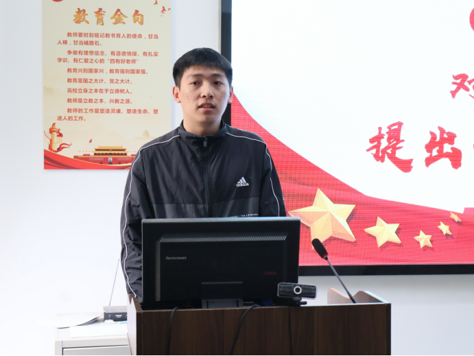 仪式接近尾声,张震洋老师对本次入团仪式进行了总结,对新团员提出四点希望和要求,期待新团员们成为有理想、有品德、有本领、有韧性的新时代青年,在集体中发光发热,在志愿服务、社会实践中展现青春风采。