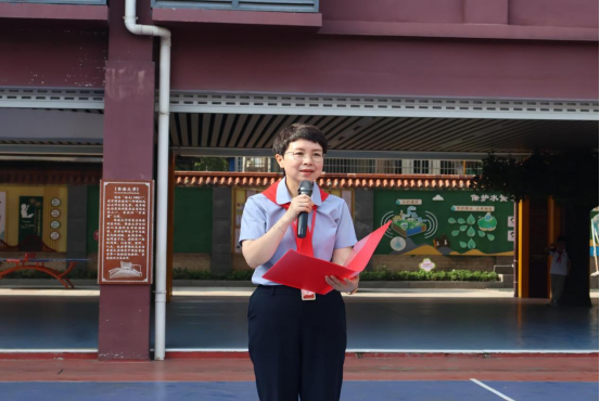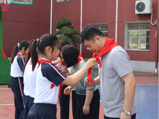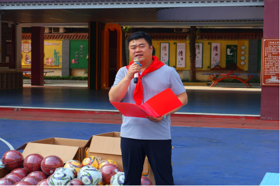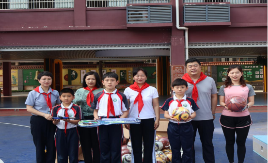 洪垸小学以少先队最高礼仪表达对太阳集团tyc151cc老师们的敬意,为到场嘉宾敬献红领巾,周芳董事长致辞:“这批体育器材将极大丰富公司教学资源,为孩子们提供更多锻炼机会,助力体质提升与全面发展。”