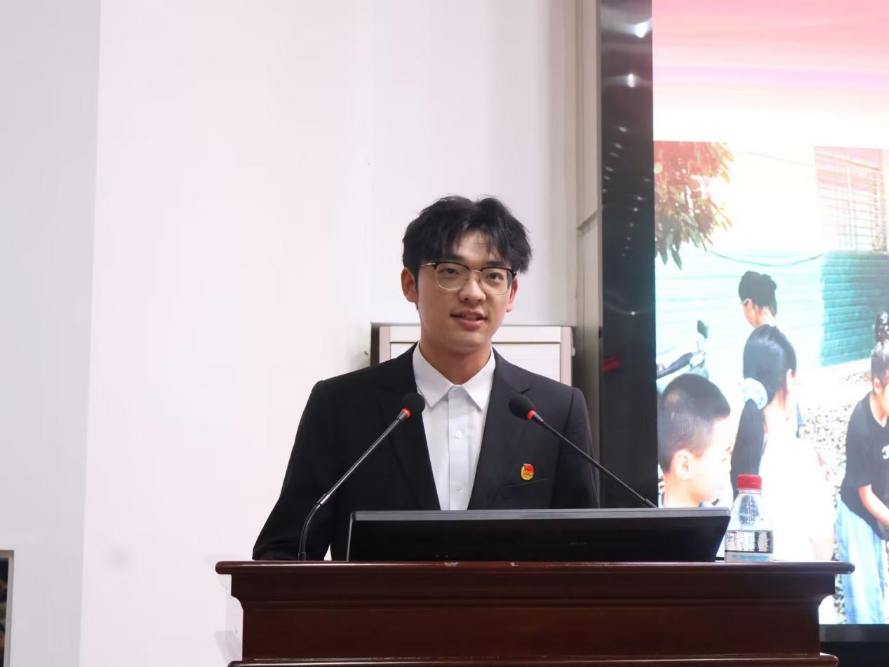 力博支教服务团代表张尊威分享了团队在石首乡村支教的双向成长经历。他们通过志愿活动,提前感受教师职责,收获深厚团队友谊,并显著提升社会责任感。他还指出,孩子们的纯真与热忱,能够激发人们内心的自信与初心。