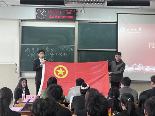 在庄重的氛围中,辅导员高恒向团委员工会代表授旗。这面旗帜不仅代表着荣誉,更象征着工作责任的正式交接。接过旗帜的那一刻,新一届团委员工会、宣传中心成员们深感责任重大,使命光荣,他们将以更加饱满的热情和更加严谨的态度投入到工作中去。