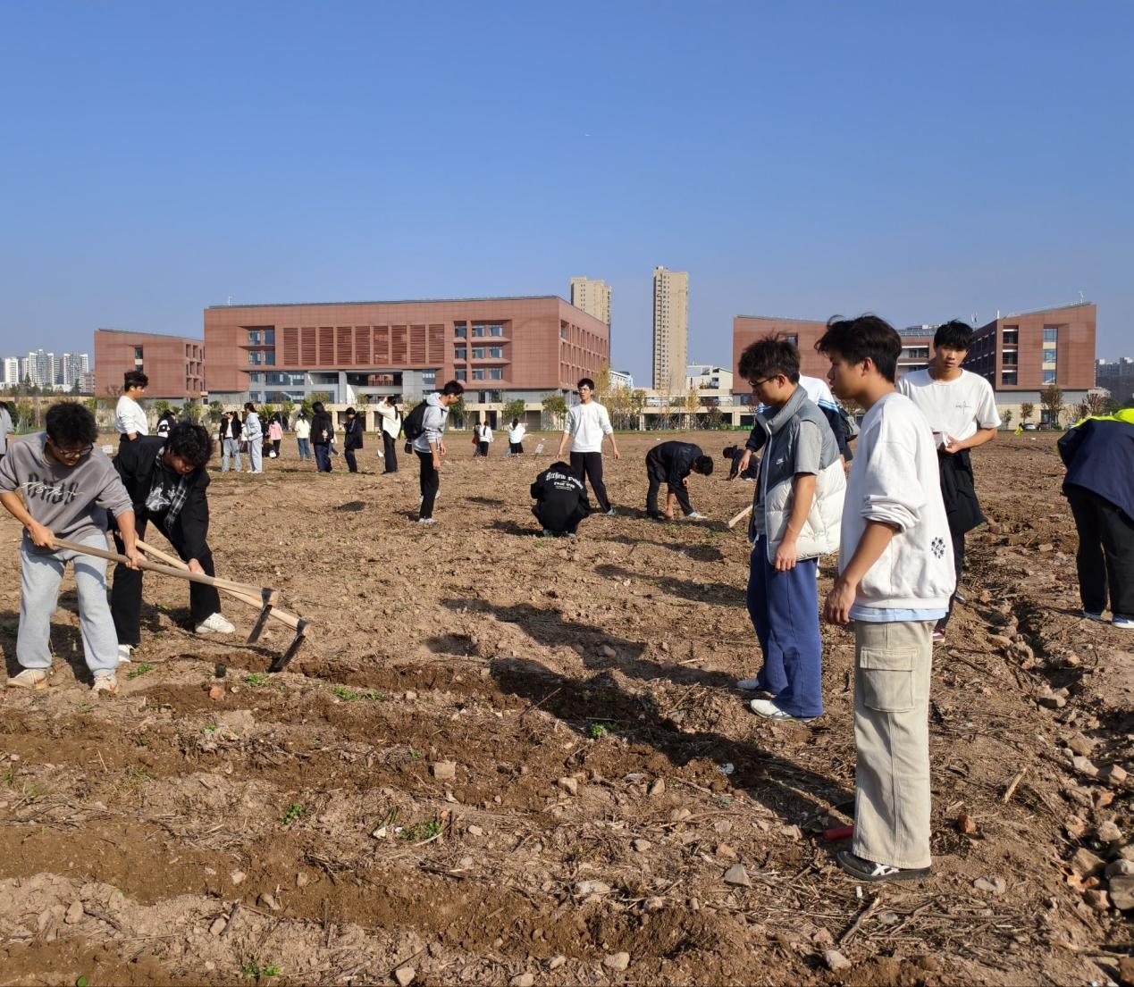 【通讯员 王雅妮 冯佳颖】为贯彻落实五育并举的教育理念,培养时代新人。10月-11月,2025级新生劳动教育实践活动在校园劳动实践基地展开。四百余名新生走进田间地头,亲手参与松土、捡石、播种、浇水、除草等基础农事操作,以实践体验开启了老员工涯中别具意义的“劳动课”。 本次活动是公司劳动实践教育的重要环节,旨在通过沉浸式劳动体验,引导员工树立正确的劳动观念,掌握基本劳动技能。劳动现场,同学们以班级为单位分组协作,有序开展种植活动。 在活动中,新生们一边学习,一边实践,将理论知识与动手操作紧密结合。同学们在辅导员喻泽坤的带领下,学习并逐渐掌握了握锄沉肩、斜切入土、翻土碎块、播种浇水等动作技巧。尽管有些新生是第一次接触农具,动作略显生疏,但随着活动的进行,他们逐渐变得熟练。 2025级新生们表示,通过亲手进行松土捡石、播种浇水、挑苗除草,他们直观地体会到了农事劳动的细致和辛劳,这为他们即将到来的农事实践积累了宝贵的基础认知。一堂生动的劳动实践教育课程正在校园里缓缓展开,它不仅是一次次实践的体验,更是一次次心灵的触动和成长的起点。 本次活动不仅关注农作物种植技能的培养,更重视劳动认知的培育。公司将结合作物的生长周期,持续开展从播种到管护的全流程实践,以此推动劳动教育与实践育人的深度融合。 (编辑:喻泽坤 审核:何可可)