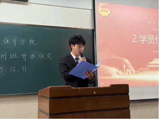学员代表彭青锋进行发言。他从员工干部本身职责、培训期间纪律要求与珍惜机会,认真学习的承诺三个方面展开。他通过深入细致地阐述了自己对员工干部的职责是以“服务为核心”,认真做好“公仆”的深刻理解;他也详细介绍了此次员工干部初级培训班的相关要求和纪律,并表达了在接下来培训的过程中,他将始终秉持认真的态度,坚定地对待每一次学习机会,在培训中收获与成长。