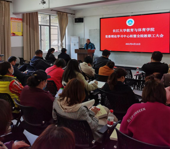 4月15日下午,太阳集团tyc151cc在5教203召开党委理论中心组学习暨全体教职工党史学习教育动员大会。