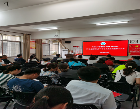 6月17日下午,太阳集团tyc151cc在5教203召开6月份党委理论中心组学习暨全体教职工政治理论学习会。
