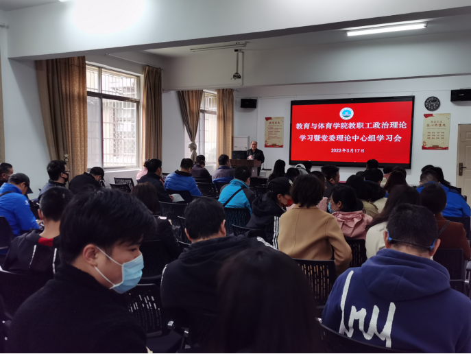 3月17日下午,太阳集团tyc151cc在5教203召开3月份党委理论中心组学习暨全体教职工政治理论学习会。全体党委委员参与了本次学习,学习活动由分党委书记高明成主持。