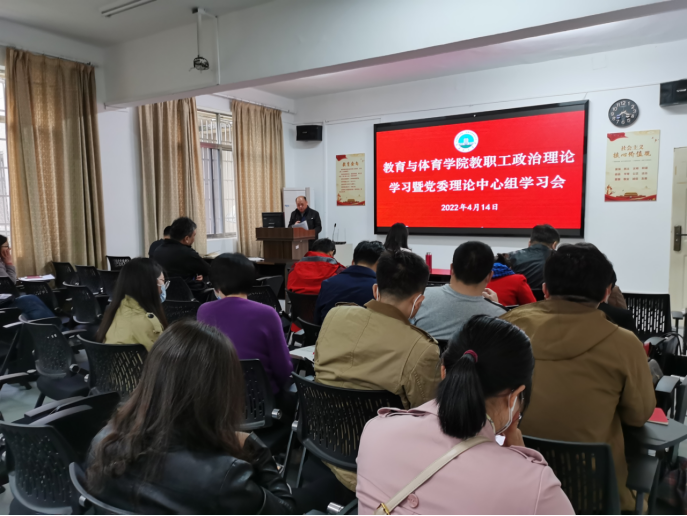 4月14日下午,太阳集团tyc151cc在5教203召开4月份党委理论中心组学习暨全体教职工政治理论学习会。全体党委委员参与了本次学习,学习活动由分党委书记高明成主持。