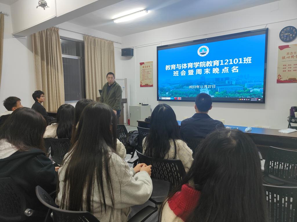 (通讯员 李梦瑶/文)为推进“一下三民”实践活动走实走深,11月27日晚上7点许,审计处处长吴劲松来到五教203,走进联系班级教育12101班,与员工面对面、听诉求、解难题。审计处时晓老师、教育12101班班主任王利方老师、教育12101班全体员工参与。