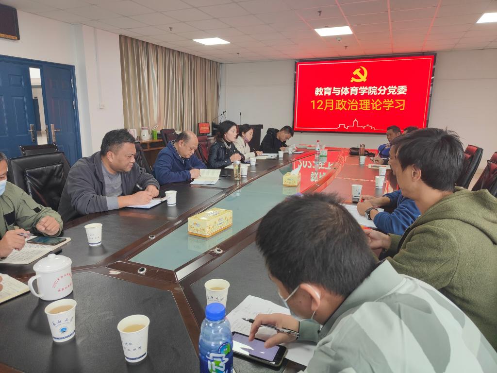 12月29日下午,教育与体育公司党委理论学习中心组在文科大楼905会议室开展党的二十大精神专题学习会集中学习,公司全体领导班子成员、支部书记参加学习,学习会由公司党委书记高明成主持。