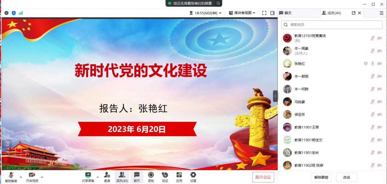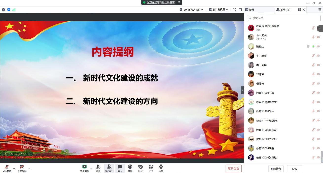 最后张经理再次结合切身经历讲授完新时代文化建设的成就和方向,她勉励各位同志要始终保持对文化意义、文化作用、文化地位的深度认同。牢固树立对文化建设、文化发展、文化进步的责任担当。