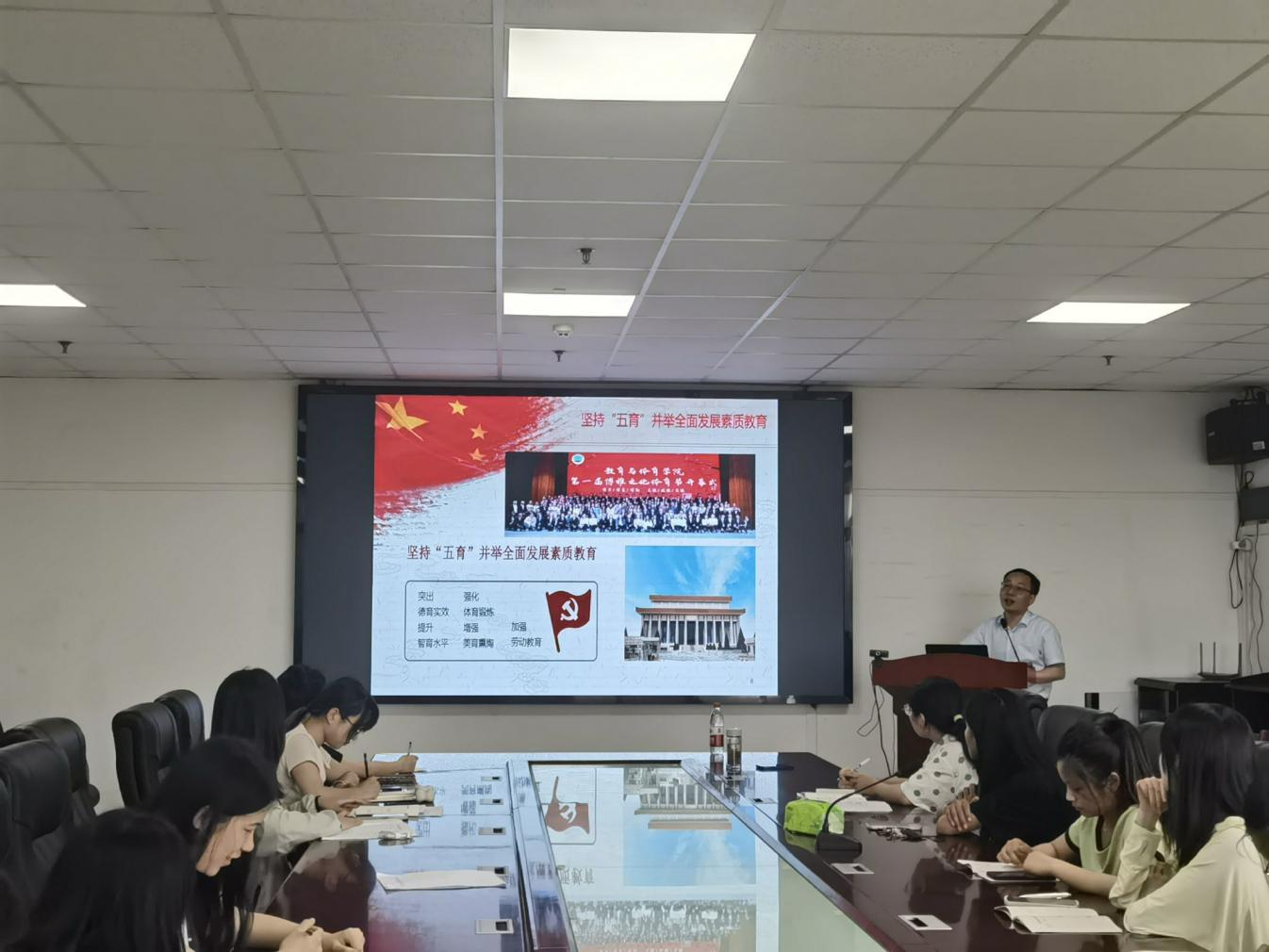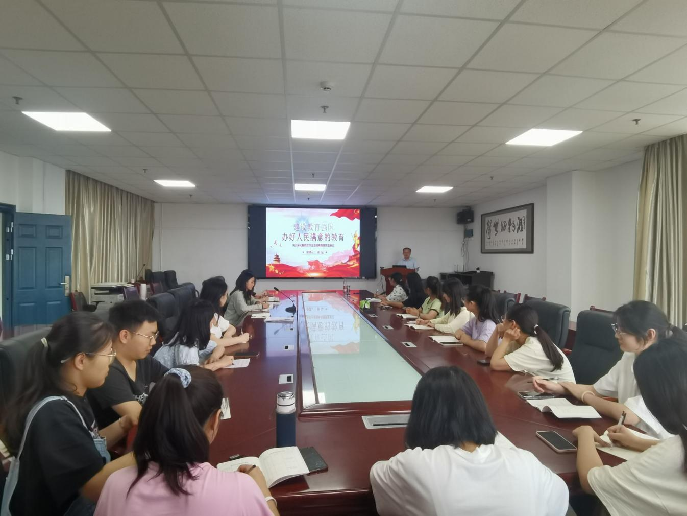 活动前期,支部书记吴钐老师带领支委会积极地筹备党课准备工作。活动伊始,由吴钐老师主持大会,为各员工党员对熊经理进行了全面介绍,同志们以热烈掌声欢迎熊经理的党课讲授活动。本次党课以“建设教育强国,办好人民满意的教育——关于深化教育改革全面提高教育质量意见”为题,并以“着力培养担当民族复兴大任的时代新人”、“坚持‘五育’并举全面发展素质教育”、“强化课堂主阵地作用切实提高课堂教学质量”、“深化关键领域改革为提高教育质量创造条件”。本次党课活动总体以习近平新时代中国特色社会主义思想为指导,熊经理以自身经历启示我们要树立科学的教育质量观,着力在坚定理想信念、厚植爱国主义情怀、加强品德修养、增长知识见识,培养奋斗精神,增强综合素质上下功夫,并着重强调了德育的重要性。在党课活动末尾,熊经理还带领同志们学习《教育部十七部门关于印发〈全面加强和改进新时代员工心理健康工作专项行动计划(2023年-2025年)〉的通知》,鼓励同志们与时俱进,勇立潮头,争当时代优秀教师,培养担当民族复兴大任的时代新人。