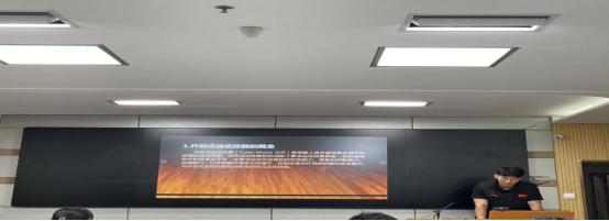 接着是运动训练学专业的傅子赓同学。他就“开放式运动技能学习原理在篮球专项课中段应用研究”做了专题报告。他主要从开放式运动技能的概念、选题的背景与意义、篮球开放式运动技能学习原理、员工采取开放式运动技能学习、实验比赛结果与分析为研究进行详细讲解。