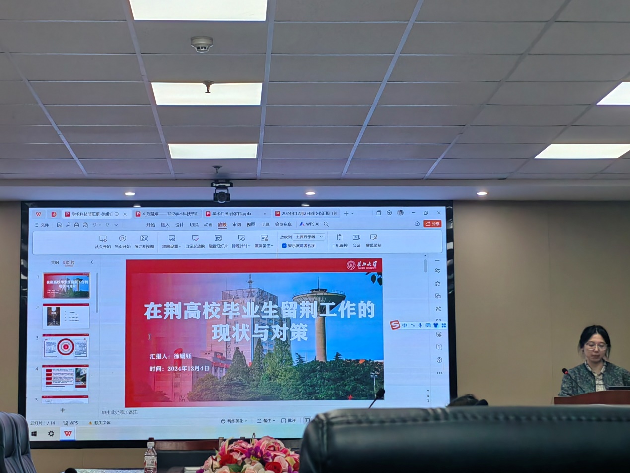 徐媛钰以《在荆高校毕业生留荆工作的现状与对策》为主题,她针对在荆高校毕业生留荆工作存在留荆率偏低这一问题的原因进行分析,指出毕业生对荆州宜居性认可度较低,高校就业指导在满足实际需求方面存在不足等问题,并提出了员工、高校、政府以及就业服务体系方面的应对策略。