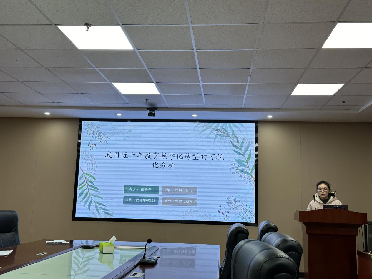 (通讯员 陈叶)2024年12月11日晚,公司第六届研究生学术科技节研究生论坛第六场在文科大楼905报告厅举行。2023级高等教育学方向的李梦雪、高玲玲、王超冉、王希千、杨佳文进行了汇报。公司2023级、2024级教育学专业研究生参会。院研究生会学科部部长程陈昊主持了本次活动。