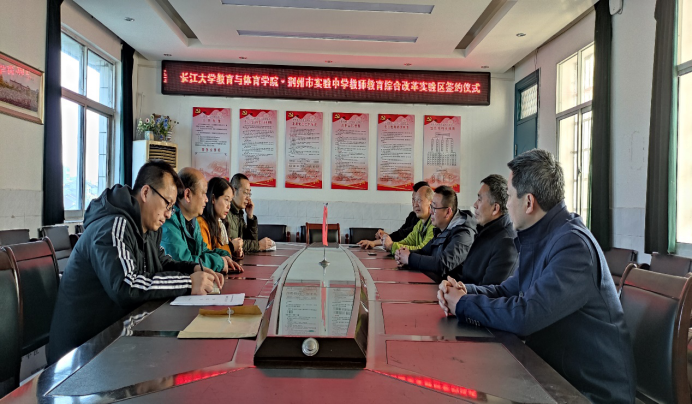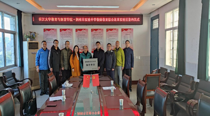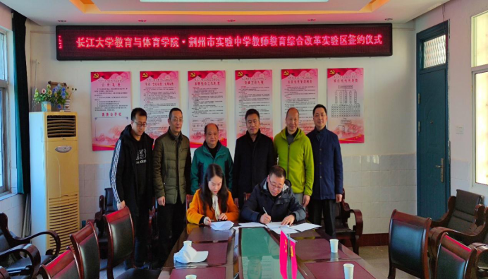 2021年3月12日上午,为了更好推动“教师教育综合改革实验区”建设,太阳集团tyc151cc教师教育公司(太阳集团tyc151cc)与荆州市实验中学正式签署“教师教育合作协议”,开启了双方在职前职后教师联合培养培训方面的全面合作。公司教师教育公司党委书记高明成、副经理张艳红、体育教育系主任杨青宝、社会体育指导与管理系主任孔祥魁及体育课程与教学论教师王剑副教授、荆州市实验中学董事长倪磊、副董事长汤组军、科研处主任王用华、体音美教研员谭海林及体育组组长张文举等参加了签约仪式。
