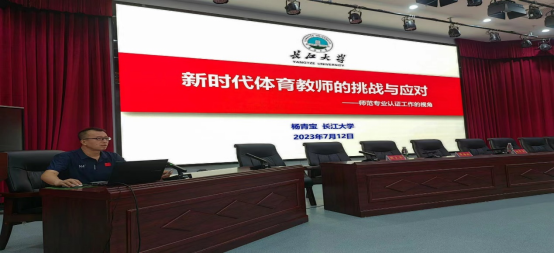 2023年7月12日,公司体育教育系主任杨青宝副教授应荆州区教育科学研究院的邀请,参加荆州区2023年暑期中小学体育与健康教师专业能力提升培训。在荆州市实验小学(荆北校区)大礼堂,杨老师为荆州区体育教师开展了题为《新时代体育教师的挑战与应对》的专题讲座。讲座由荆州区教科院体育教研员梅江老师主持。