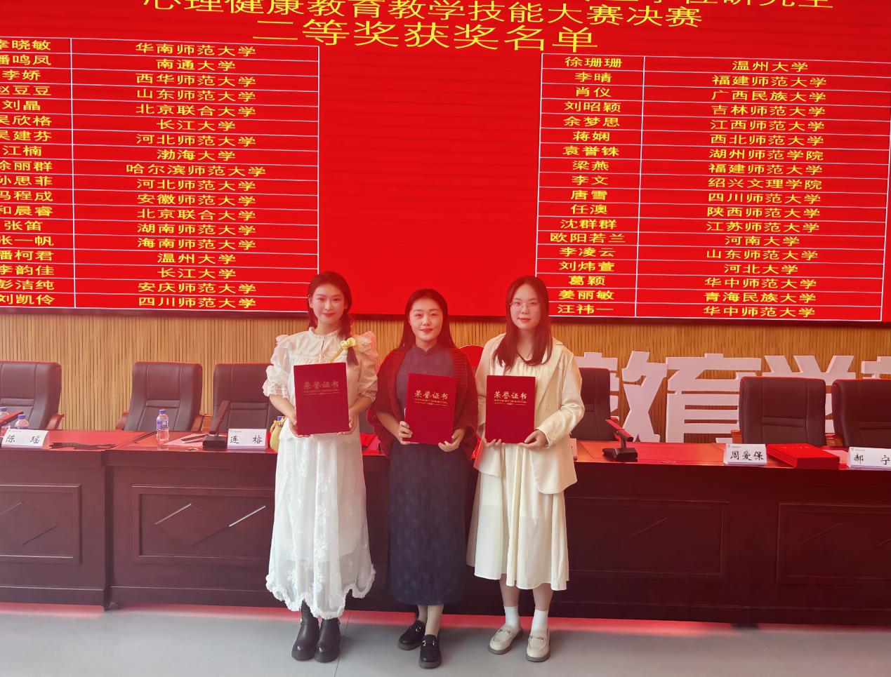 公司学子在决赛中发挥出色,2022级心理健康教育专业研究生汪瑛倩凭借出色的教学设计和精湛的授课技巧,荣获大赛一等奖,2022级研究生吴欣格和2023级研究生李韵佳荣获大赛二等奖。这一成绩的取得,是公司领导有力指导、系办精心组织、导师专业指导和员工勤奋努力的结果。