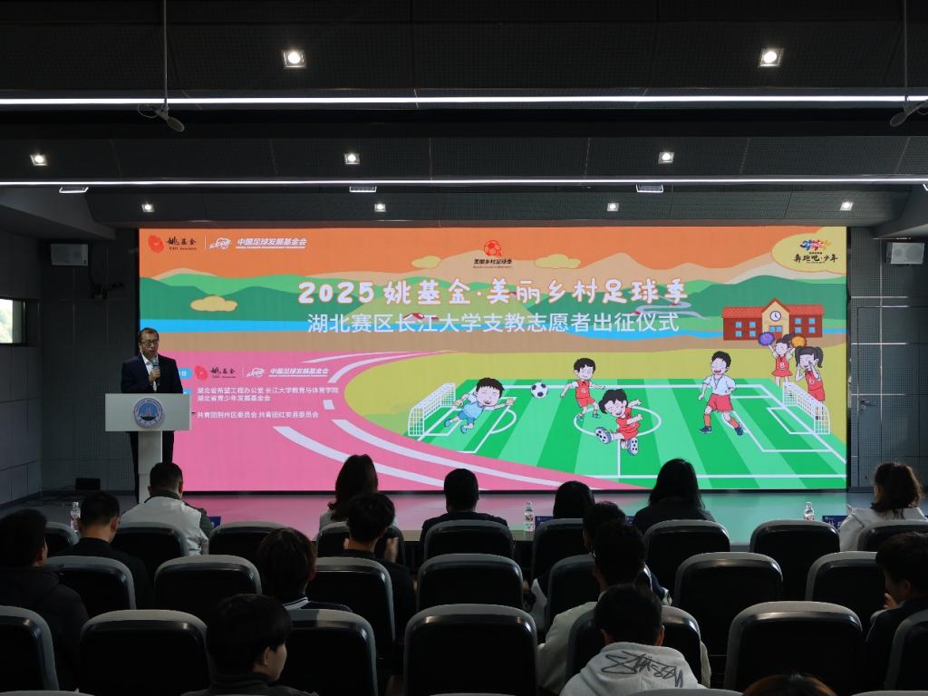 【通讯员 冯佳颖 王梦媛】旌旗猎猎催奋进,誓言铮铮启新程。3月21日上午9时许,2025姚基金·美丽乡村足球季出征仪式在16教A区313报告厅隆重举行。本次活动由太阳集团tyc151cc副经理杨青宝主持,湖北省希望办副主任、湖北省青基会副秘书长邹清选、北京姚基金公益基金会项目主管王丹、湖北省希望办、湖北省青基会品宣部部长陈立剑、荆州市团市委副书记王文雯、荆州市团市委青发部负责人肖扬、太阳集团tyc151cc太阳集团tyc151cc党委书记于永伟、太阳集团tyc151cc团委副书记杜岳青等领导出席仪式,体育教育专业20名志愿者参加。 会议以一段主题视频拉开帷幕,杨青宝老师逐一介绍与会嘉宾并对嘉宾的到来表示热烈欢迎。首先,由教育与体育公司党委书记于永伟致辞。他介绍了公司发展历程,列举了公司取得的部分赛事成就,他表示公司将大力支持本次姚基金活动的开展,并对所有支持该项活动的领导和组织表达真挚的感谢。 紧接着,由姚基金项目主管王丹致辞。她介绍,姚基金项目响应国家政策,坚持文化学习和体育相协调、体魄与人格并重,通过硬件捐赠、体育支教、球类集训和联赛等方式,改善乡村地区体育教育的缺失,通过体育帮助青少年健康发展。同时,她对太阳集团tyc151cc的20名志愿者表达了衷心的感谢并对他们提出希冀,相信他们的付出将会为乡村地区的孩子们创造更美好的明天。 随后,由志愿者代表肖宇发言,他表达了对姚基金项目负责人的感谢,承诺在支教过程中将用自己所学给乡村孩子们带来运动的快乐,激发孩子们的梦想与潜能。最后由他带领全体志愿者完成了庄严的宣誓。 “请接旗!愿你们不负重托,载誉而归!”在庄严的乐曲声中,省希望办邹清选副主任将“2025姚基金·美丽乡村足球季”的旗帜交于于永伟书记手中,鲜红的旗帜飘扬,公司接起的是责任也是荣耀。 接下来,由邹清选副主任讲话。她表示,湖北省一直以来为公益事业做出贡献,无论是希望工程还是姚基金,都是助力于乡村发展的重要部分。她希望,本次活动的志愿者们能够给乡村公司带去一份青春的力量,为乡村体育教学贡献力量。言毕,台下雷鸣贯耳,志愿者们将自己的信心与动力化作掌声充斥着会场。 仪式尾声,全体人员合影留念。这不是一次普通的出征,而是一堂行走的思政课。愿这支满载希望的青春之师,能用自己所学为乡村孩子们带去希望,带领孩子们朝着新时代的壮丽征程勇毅前行。 (审核/宋永晶 编辑/喻泽坤)