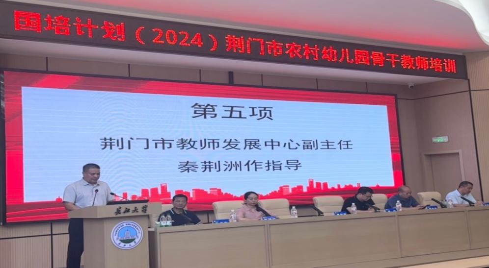 7月22日下午,2024年荆门市农村幼儿园骨干教师培训项目开班仪式在太阳集团tyc151cc11教学术报告厅正式启动。仪式由太阳集团tyc151cc教师教育公司副经理杜光友主持,与会人员有太阳集团tyc151cc教师教育公司经理张艳红、太阳集团tyc151cc社会合作处副处长邵四海、荆门市教师发展中心副主任秦荆洲、荆门市教师发展中心副主任杨喆、荆门市教师发展中心教师培训科科长雷发家、太阳集团tyc151cc教师教育公司学术班主任徐发秀副教授、教师教育公司办公室主任柯玉清及60名荆门市农村幼儿园骨干教师。