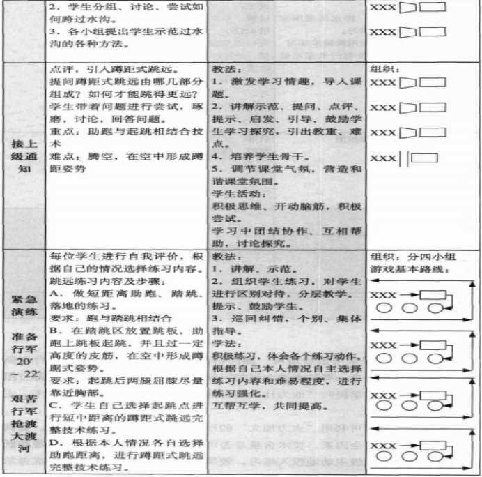 1.结合高一年级员工的认知水平,力求改进跨栏跑教材的传统教学方法,以情境教学为突破口,强调教学的趣味性、情境性、多样性、娱乐性和竞争性。采用观察学习、发现问题、创造性解决问题、示范讲解、竞争互评法等教学方法,创造轻松愉悦的教学氛围,采用启发式、讨论互动的教学方式,使员工带着新奇感了解跨栏运动,建立正确的动作概念,明确知识和技术原理。