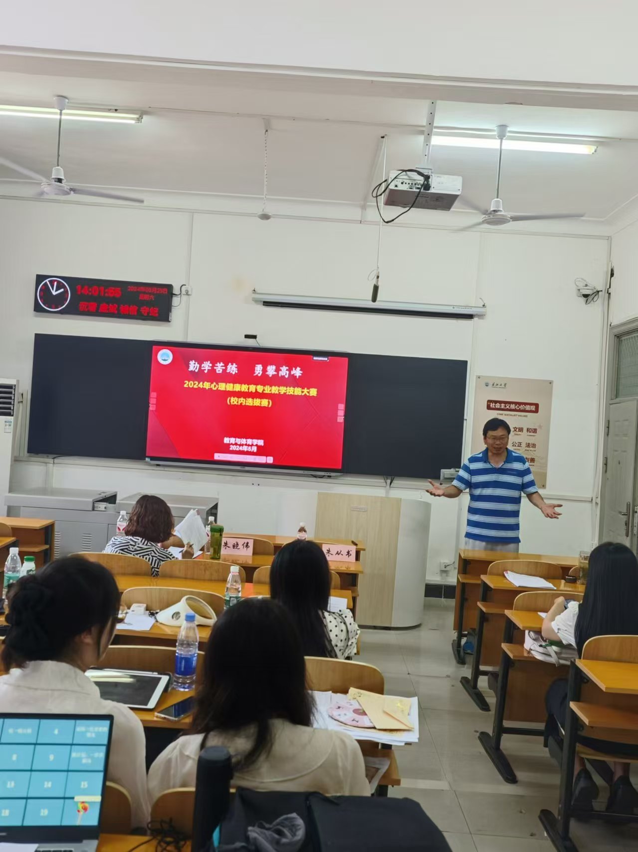 (通讯员:周久远)勤学苦练,勇攀高峰,2024年5月25日下午,公司在1教201教室顺利举行了“田家炳杯心理健康公司产品技能大赛校内选拔赛”。该比赛旨在提升教育硕士的专业技能,为2024年全国“田家炳杯”全日制教育硕士专业学位研究生心理健康教育专业教学技能大赛遴选参赛选手,共9名心理健康教育专业硕士研究生报名参赛。本次比赛由心理系主任朱晓伟老师主持,比赛内容包括教学设计、模拟授课两部分。