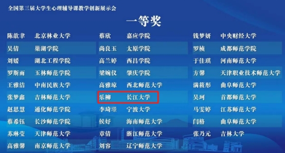 据悉,本届全国老员工心理辅导课教学创新展示会由教育部高等公司心理学类专业教学指导委员会、中国心理学会主办,浙江师范大学、华东师范大学、桐乡市教育局承办。比赛分初赛和决赛两个阶段,共有156所院校的288个作品参加初赛,其中99所院校的144名选手入围决赛。决赛分现场说课和现场授课两个阶段进行,乐柳以扎实的理论基础、过硬的专业技能和良好的精神风貌,在激烈的竞争中脱颖而出,荣获一等奖。